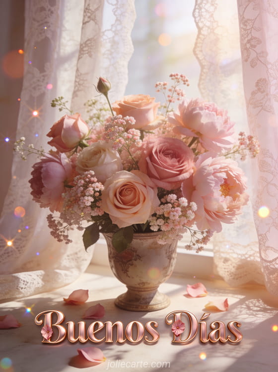 Buenos días flores un romántico buenos días con hermosas flores para alegrar la mañana