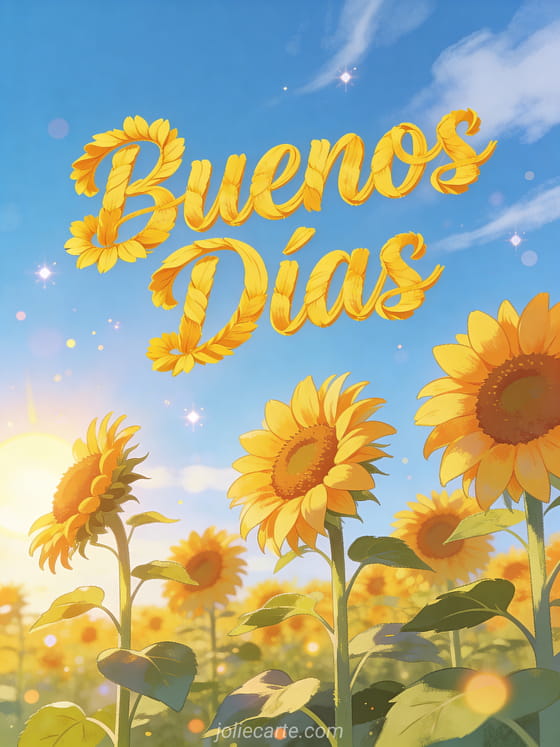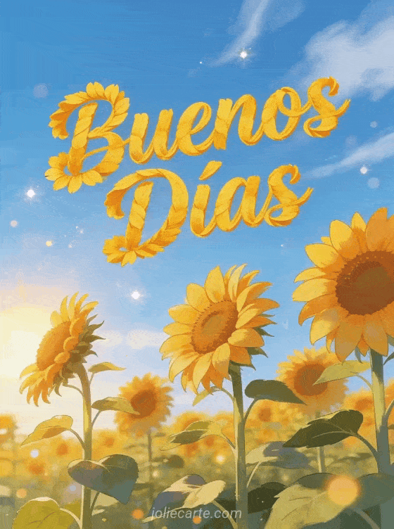 Alegra la mañana de alguien con esta vibrante tarjeta de buenos días con girasoles. Descubre también una tarjeta les deseo buenos días o una buenos días imágenes o un buenos días mensaje.