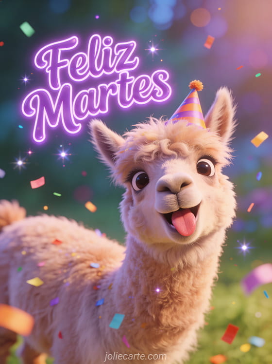 Empieza el martes con una sonrisa gracias a esta divertida tarjeta de llama. Descubre también una tarjeta feliz martes arco iris o una tarjeta de humor feliz martes frío.