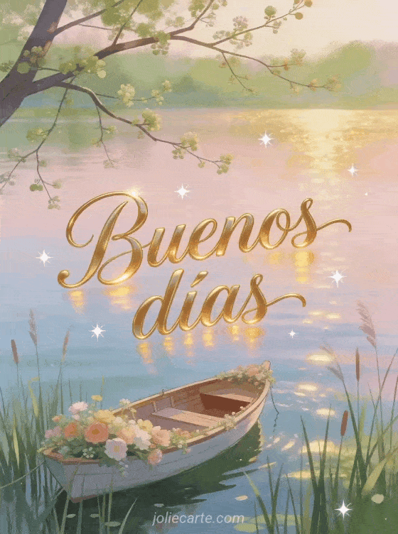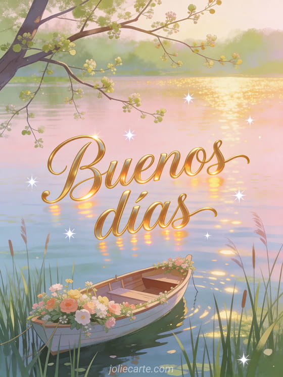 Envía una hermosa tarjeta de buenos días con una barca florida amarrada entre juncos al amanecer. Descubre también una tarjeta buenos días gif animado, una tarjeta mensaje buenos días madrugador o una tarjeta mensaje buenos días a mi amor.