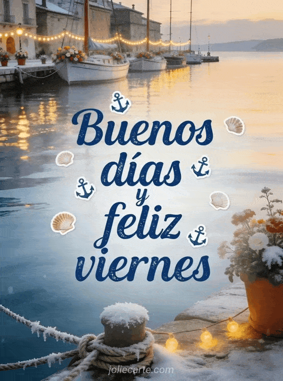 Buenos días y feliz viernes gif un cálido saludo marítimo de viernes por la mañana con un pintoresco puerto invernal