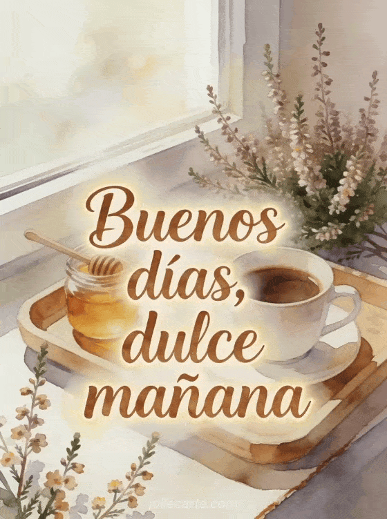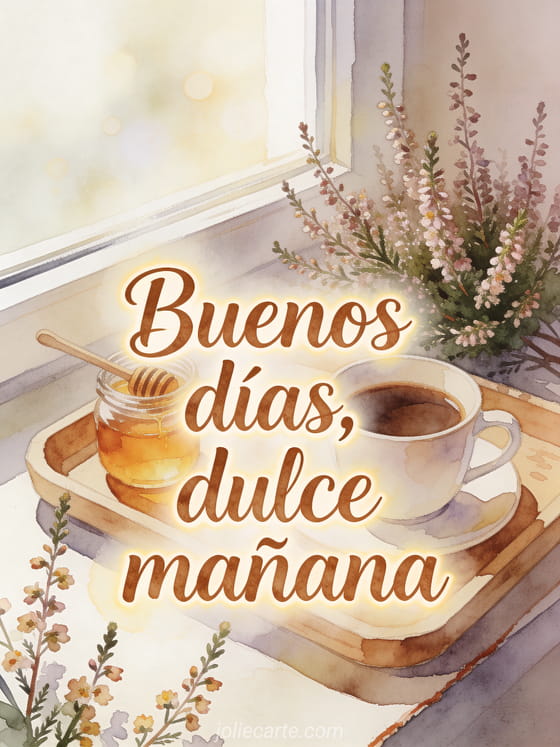 Comienza la mañana con calma gracias a letras sepia en acuarela, una bandeja de desayuno, una taza de café, un tarro de miel, ramitas de brezo y luz aireada de ventana. Descubre también una tarjeta de buenos días café imagen gratis, una tarjeta de café buenos días café gif animado o una tarjeta de buenos días café gif.