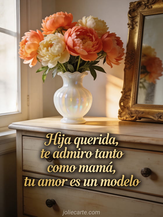 Hija querida, te admiro tanto como mamá, tu amor es un modelo un mensaje cálido e íntimo para tu hija