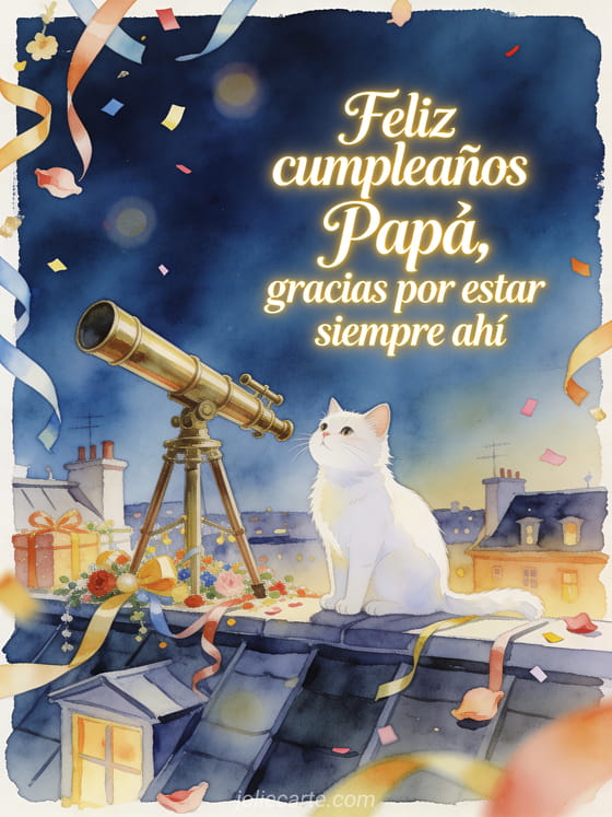 Comparte una carta para el cumpleaños de papá con una escena en acuarela llena de gratitud por estar siempre ahí. También pueden enviar una tarjeta de feliz cumpleaños mi papá querido, un saludo de feliz cumpleaños a papá o un mensaje de feliz cumpleaños mi papá.