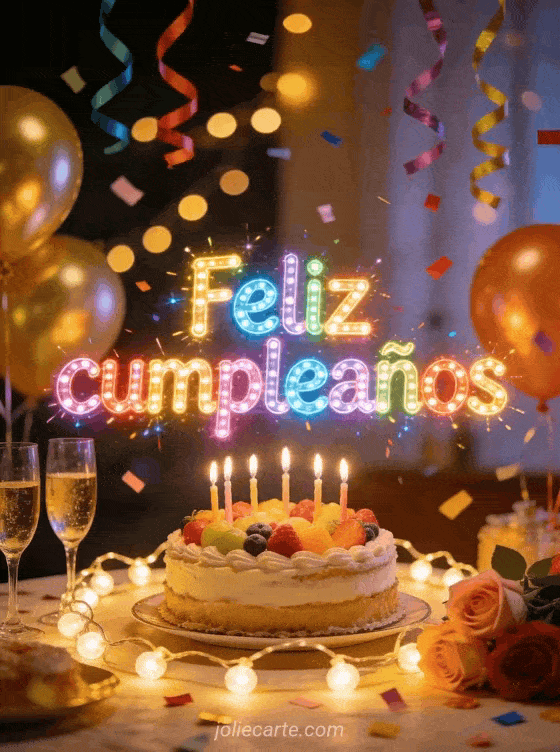 Envíe un festivo feliz cumpleaños con esta alegre tarjeta de celebración. Descubra también una imagen de cumpleaños con pájaro, una tarjeta gif de cumpleaños con jardín o una tarjeta floral de cumpleaños.