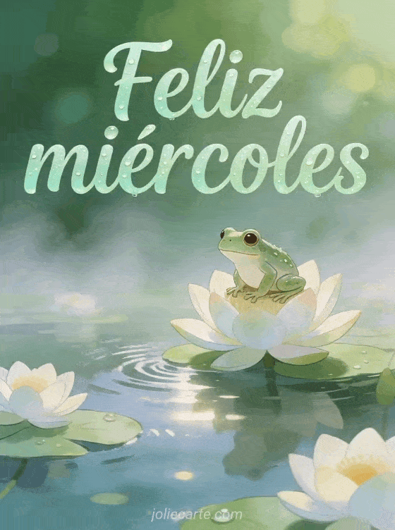feliz miércoles un saludo sereno de miércoles lleno de naturaleza, agua tranquila y luz verde suave