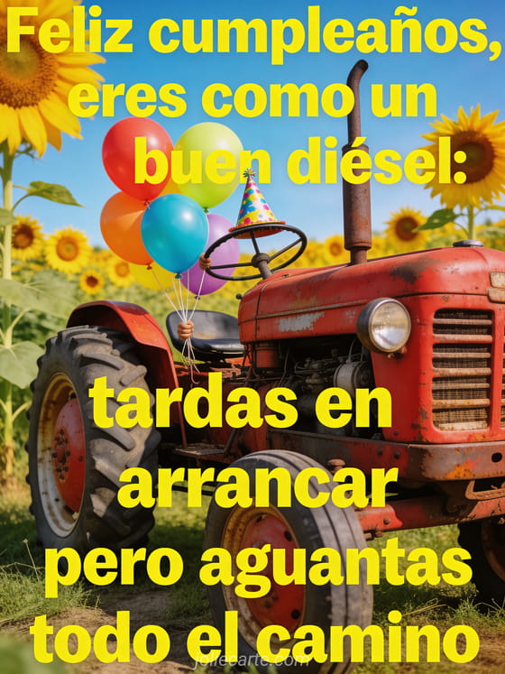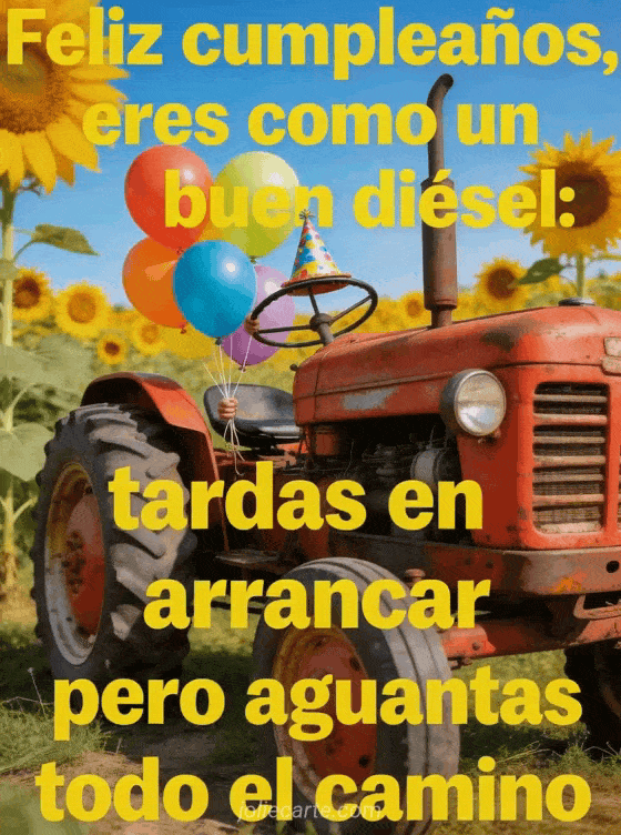 Comparte esta tarjeta de cumpleaños divertida con un tractor entrañable, globos coloridos y una broma sobre la edad. También puedes ver gif cumpleaños hombre humor gratis, feliz cumpleaños hombre humor gif y linda tarjeta cumpleaños hombre.
