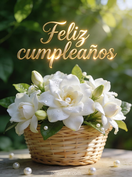 Compartan esta tarjeta floral con gardenias blancas y jazmín para felicitar con estilo. También pueden ver feliz cumpleaños amiga lejos, feliz cumpleaños amigos de la infancia y tarjeta feliz cumpleaños camión.