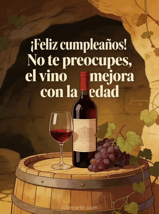 ¡Feliz cumpleaños! No te preocupes, el vino mejora con la edad un brindis de cumpleaños con humor y sabor a vino