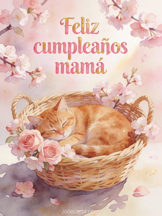 Feliz cumpleaños mamá un tierno saludo de cumpleaños con un dulce gato naranja