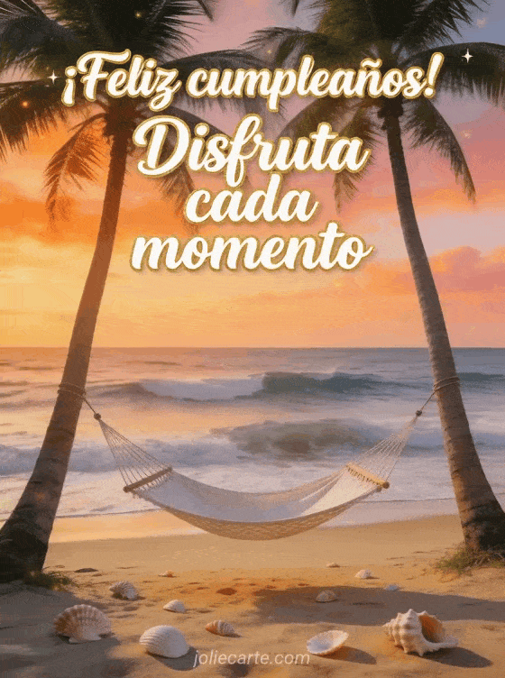 Celebra el cumpleaños de alguien con este sereno mensaje que invita a disfrutar cada momento, con una hermosa playa tropical. Descubre también una tarjeta cumpleaños que seas feliz o una tarjeta cumpleaños sonríele a la vida o una tarjeta cumpleaños cosas hermosas.