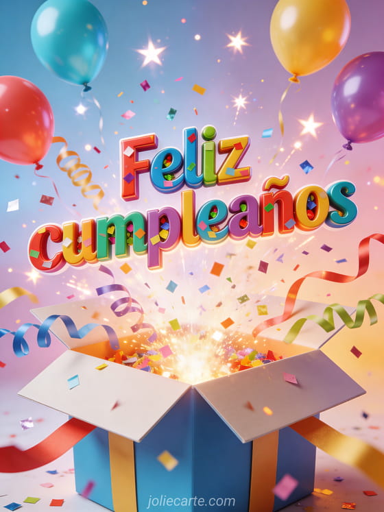 Sorprende a alguien en su cumpleaños con esta divertida tarjeta con una caja de regalo gigante que explota con confeti colorido y globos volando. Descubre también una tarjeta de cumpleaños con rosas o una tarjeta especial de cumpleaños.