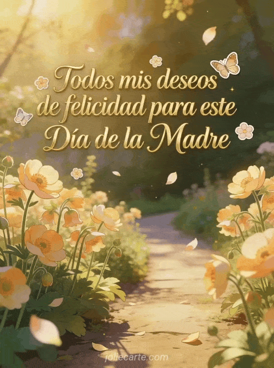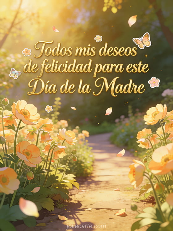 Comparte tus mejores deseos para el día de la madre con esta hermosa tarjeta con elegantes letras doradas y un sereno jardín de hemerocalis en flor. Descubra también una tarjeta día de la madre flores o tarjeta día de la madre gratis.