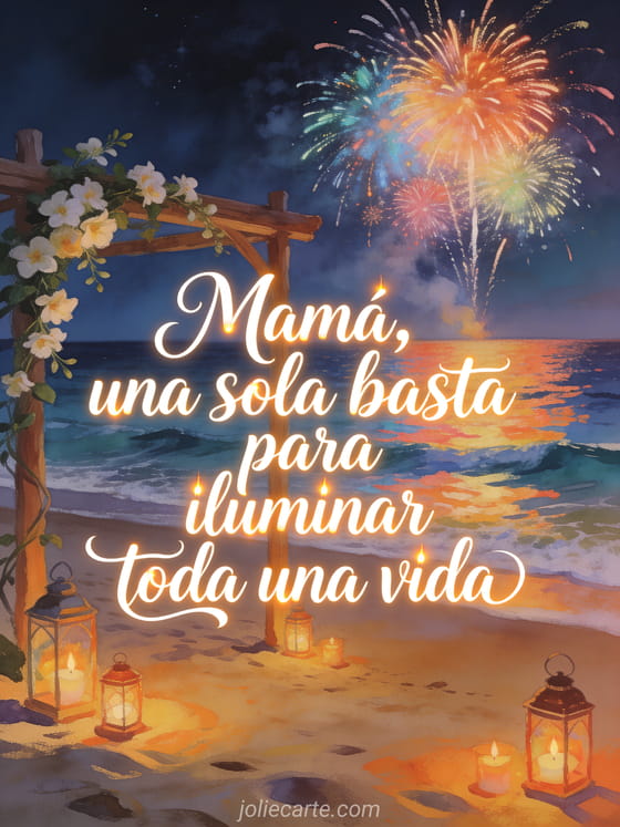 Envía esta tarjeta luminosa para expresar cuánto amor te acompaña siempre. También pueden ver poema para el día de la madre con rimas, cita día de la madre o texto a mi hija para el día de la madre.