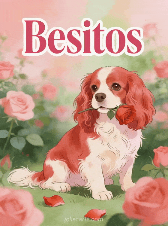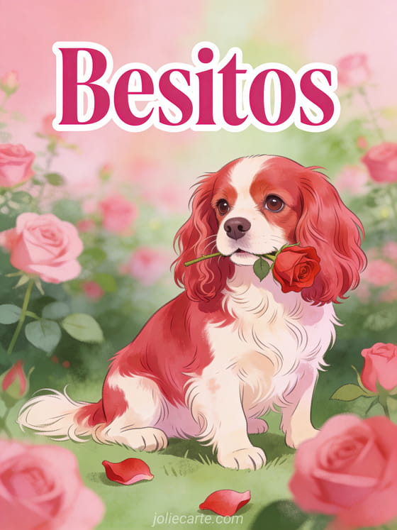 Comparta un tierno saludo de besitos con esta adorable tarjeta de perro con rosa. Descubra también una tarjeta besos cura todo o una tarjeta besitos en dibujo.