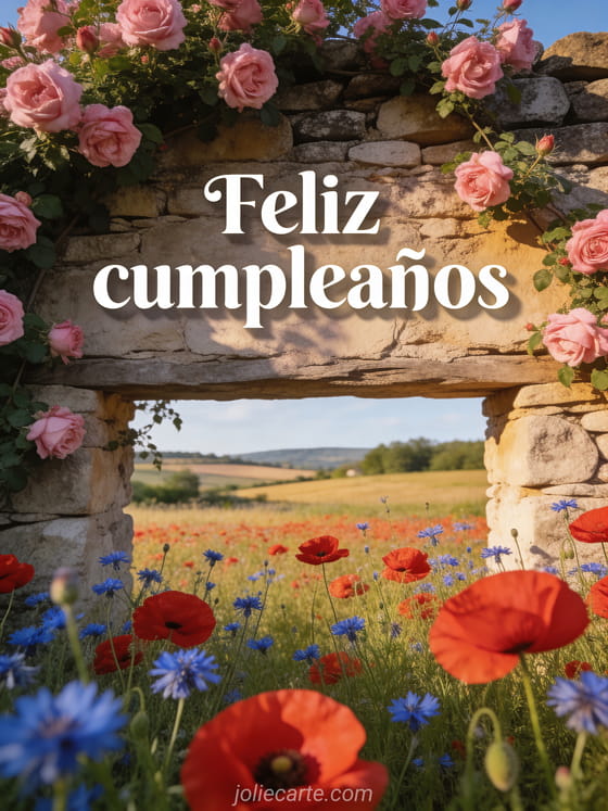 Compartan esta tarjeta fotorrealista con amapolas, flores silvestres y rosas trepadoras en luz de verano. También pueden ver amiga cumpleaños mujer amiga, gif feliz cumpleaños mujer humor y cumpleaños mujer humor gif.