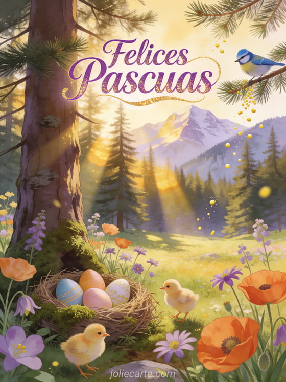 Tarjeta de Felices Pascuas con imágenes de bosque gratis