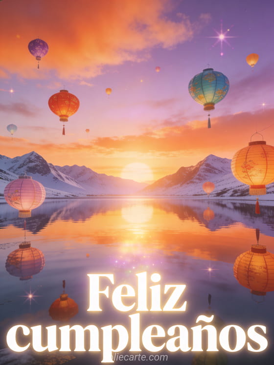 Tarjeta de cumpleaños gratis con cielo de linternas