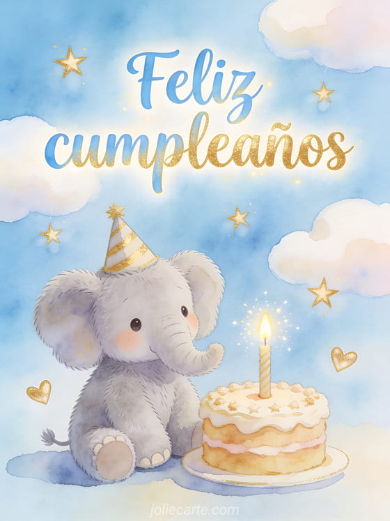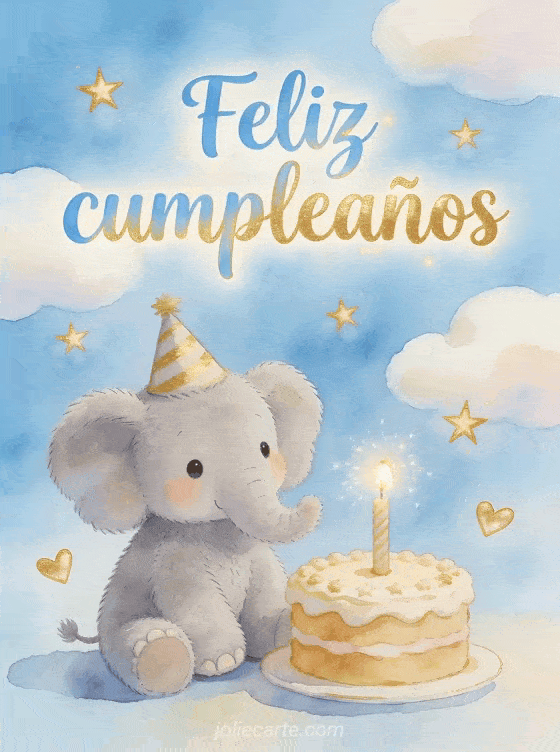 Celebren con una tarjeta estilo feliz cumpleaños bebé gif con un elefantito de peluche, una velita brillante y detalles pastel llenos de ternura. También pueden descubrir tarjeta feliz cumpleaños bebé, mensaje cumpleaños niño gracioso y imagen tarjeta cumpleaños niño.