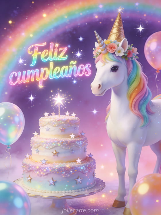 Feliz cumpleaños una tarjeta de cumpleaños mágica con un majestuoso unicornio