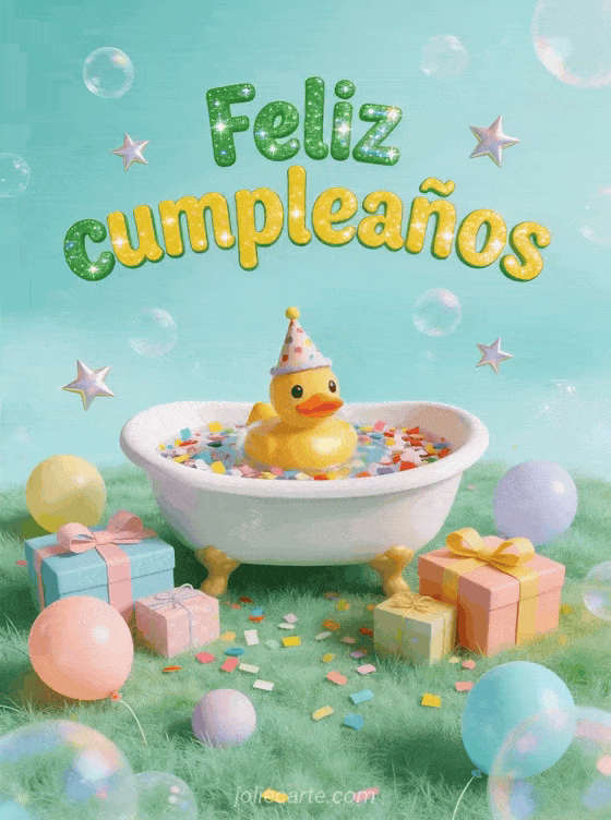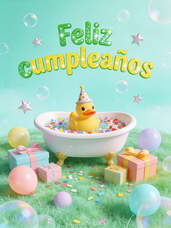 Celebra el cumpleaños de un bebé con esta tarjeta alegre con un adorable patito de goma. Descubre también una tarjeta cumpleaños gatito o una tarjeta cumpleaños unicornio.