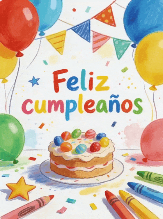 Iluminen el día con esta tarjeta de cumpleaños colorida con globos multicolor, pastel decorado, guirnaldas, estrellas y confeti. También pueden descubrir feliz cumpleaños gato gif, tarjeta virtual feliz cumpleaños rana y feliz cumpleaños con girasoles.