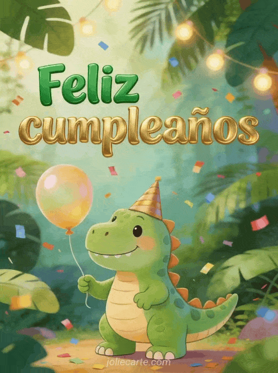 Hagan la fiesta más divertida con esta tarjeta de cumpleaños alegre y su ilustración de dinosaurio encantador. También encontrarán feliz cumpleaños amiga mía, feliz cumpleaños gif gratis o feliz cumpleaños rock n roll.