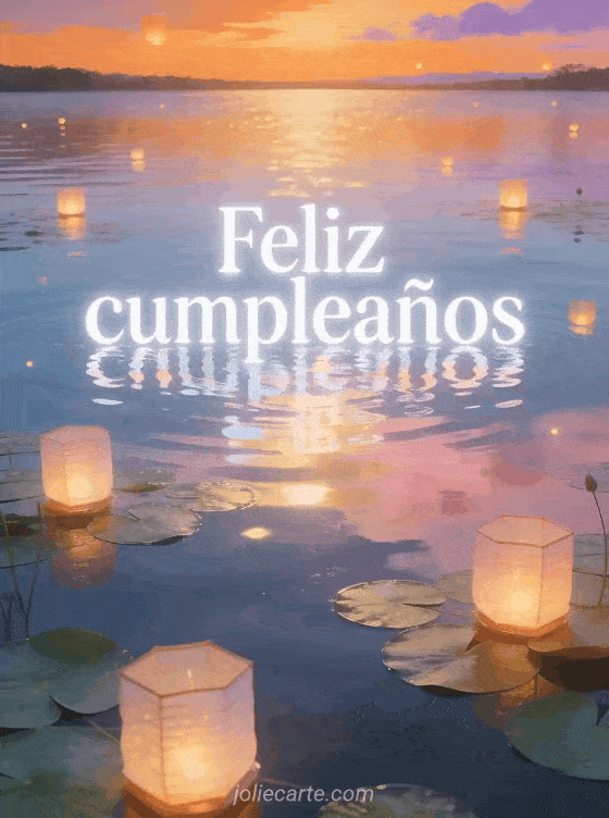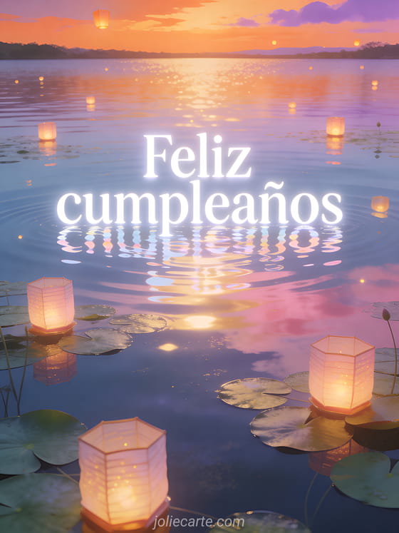Regalen un momento de calma con este lago fotorrealista al atardecer, linternas flotantes luminosas y reflejos dorados. También pueden descubrir feliz cumpleaños gato imagen, feliz cumpleaños con gato naranja y feliz cumpleaños vela.