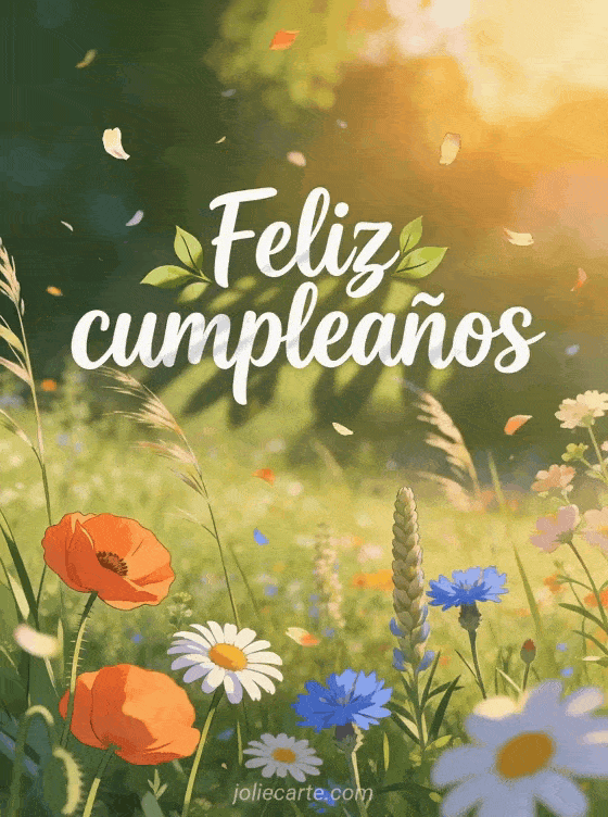 feliz cumpleaños flores naturaleza un saludo campestre con flores silvestres, pétalos y brillo cálido del atardecer