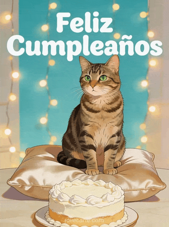 Sorprende a un amante de los gatos con este adorable gif animado de feliz cumpleaños con gato, gratis para compartir. Descubre también tarjeta animada cumpleaños musical gratis, e-tarjeta cumpleaños animada gratis o tarjetas cumpleaños animadas gratuitas.