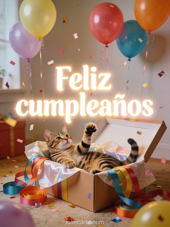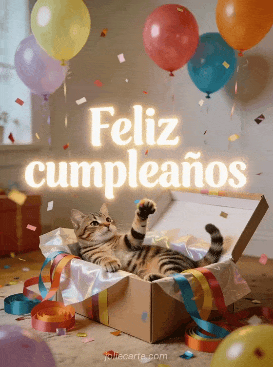 Comparte este feliz cumpleaños gato gif para enviar una felicitación divertida y cariñosa que alegre el día al instante. Si buscas más opciones, mira tarjeta virtual feliz cumpleaños rana, ecard de feliz cumpleaños y frases para desear feliz cumpleaños para seguir inspirándote.