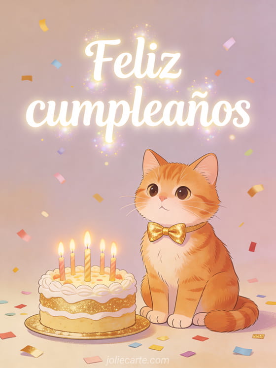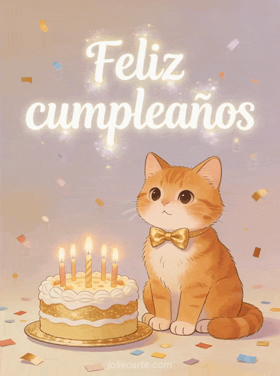 Compartan una sonrisa con esta ilustración cálida de cumpleaños con gato naranja, pastel con velas y confeti colorido. También pueden descubrir imagen de feliz cumpleaños mi hermosa, feliz cumpleaños en el agua y desear feliz cumpleaños.
