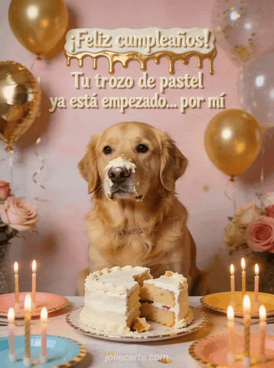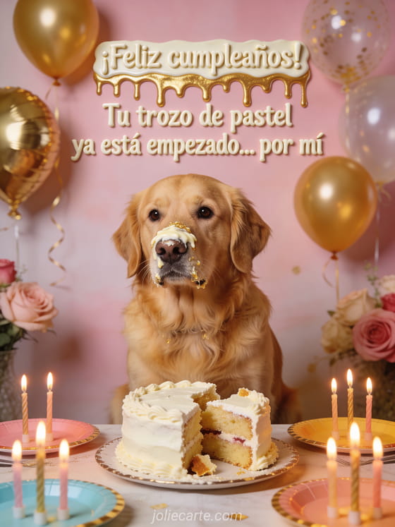 Celebren esta fecha con una tarjeta divertida de cumpleaños, un golden retriever fotorrealista y un pastel ya empezado. También pueden ver video cumpleaños divertido, gracioso feliz cumpleaños perro y gif feliz cumpleaños gracioso.