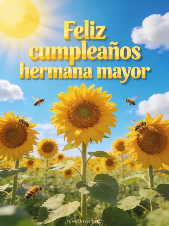 Compartan esta tarjeta veraniega y alegre para su hermana mayor y alegren su día. Descubran también feliz cumpleaños hermanita, mensaje cumpleaños hermana o feliz cumpleaños hermana imagen.