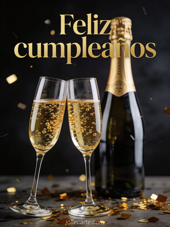 Envía un saludo sofisticado de feliz cumpleaños para tu jefe con un diseño festivo de champán. Esta tarjeta gratis aporta detalles dorados elegantes y un ambiente cálido de celebración para su día especial.