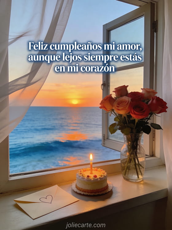 feliz cumpleaños mi amor texto conmovedor a distancia Feliz cumpleaños mi amor, aunque lejos siempre estás en mi corazón.