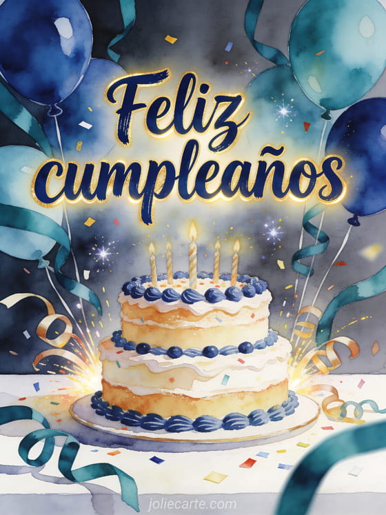 Envíen a su hermanito un mensaje luminoso de cumpleaños con un pastel vibrante, globos cobalto y serpentinas verde azulado en una escena de estudio festiva. Descubran también cumpleaños hermanito, feliz cumpleaños hermanito o feliz cumpleaños mi hermano gif.
