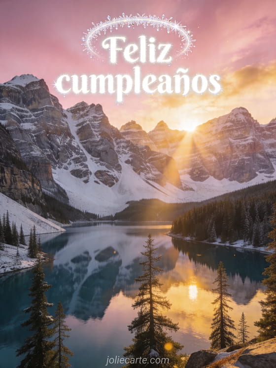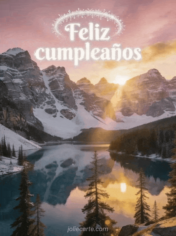 Comparte un saludo de cumpleaños tranquilo y luminoso con esta gran tarjeta de montaña al amanecer. También encontrarán feliz cumpleaños o feliz cumpleaños, feliz cumpleaños escritura o desear feliz cumpleaños.