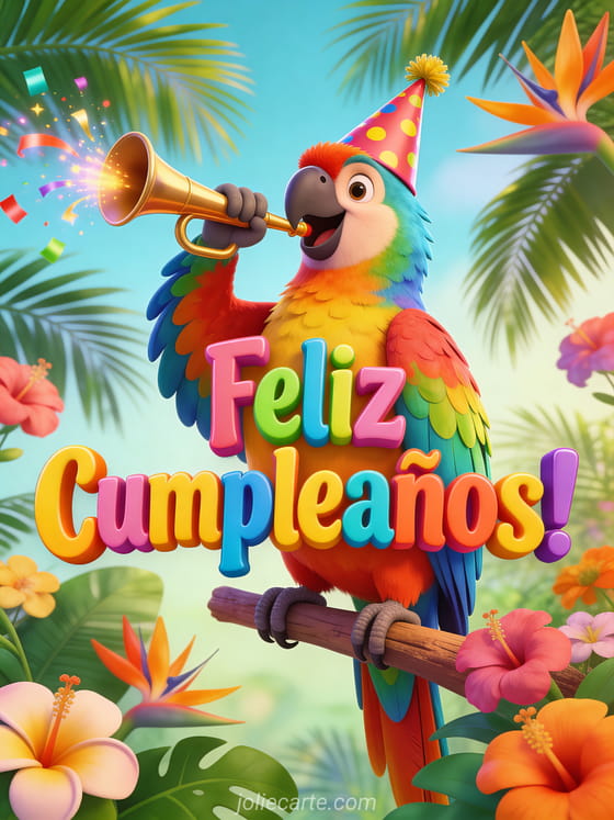 Hazla reír con esta divertida tarjeta de feliz cumpleaños para mujer llena de diversión tropical. Descubre también imagen feliz cumpleaños mujer flores, flores de cumpleaños para mujer o gif cumpleaños mujer gratis.