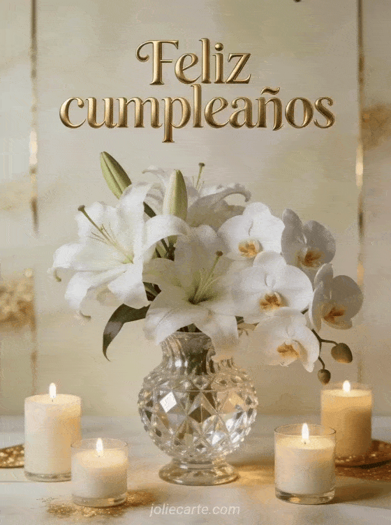 Comparte tus mejores deseos de cumpleaños con un refinado arreglo de lirios blancos y orquídeas en un jarrón de cristal. Descubra también feliz cumpleaños flores o feliz cumpleaños gifs.