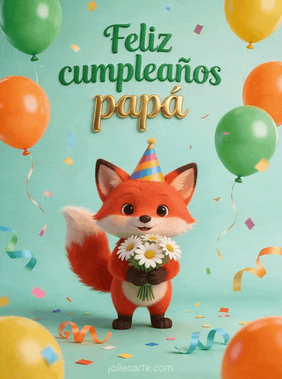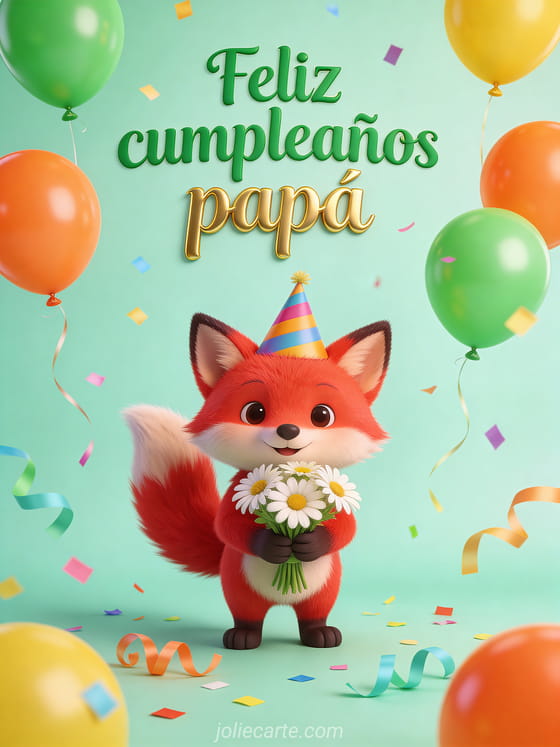 Haz mƔs especial el cumpleaƱos de tu papƔ con esta tarjeta linda de zorro, margaritas y globos de colores. TambiƩn puedes ver cumpleaƱos papƔ sms, texto de cumpleaƱos papƔ sencillo o texto feliz cumpleaƱos papƔ.