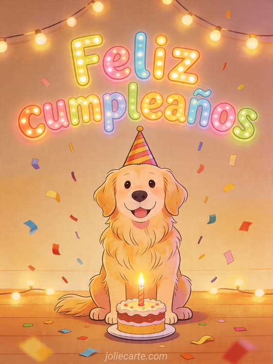 Haz sonreír a alguien con esta tarjeta de cumpleaños festiva y su enternecedora ilustración de golden retriever. También encontrarán feliz cumpleaños dibujo, feliz cumpleaños princesa o frase para desear feliz cumpleaños.