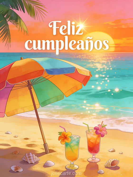 feliz cumpleaños playa sol Un saludo de cumpleaños soleado con espíritu tropical.