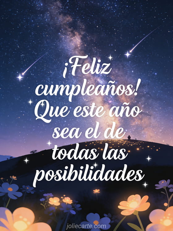 Feliz cumpleaƱos que este aƱo sea el de todas las posibilidades un deseo inspirador de cumpleaƱos bajo un cielo lleno de estrellas
