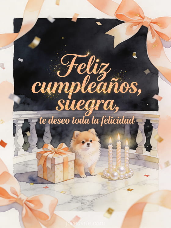 Envía un mensaje elegante de cumpleaños para tu suegra con caligrafía albaricoque, brillo suave y una escena en acuarela llena de encanto. También pueden ver una tarjeta feliz cumpleaños mamá gratis, un feliz cumpleaños mamá texto o una tarjeta feliz cumpleaños mamá.