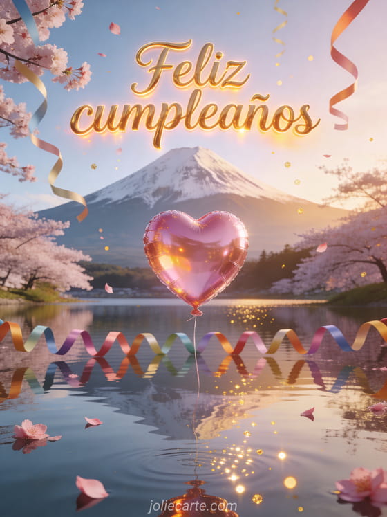 feliz cumpleaños tarjeta mujer Un saludo de cumpleaños poético en un panorama japonés sereno.