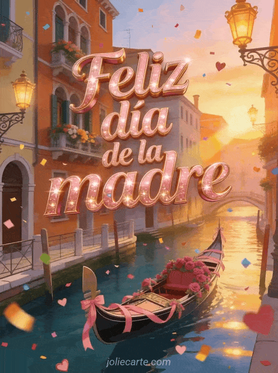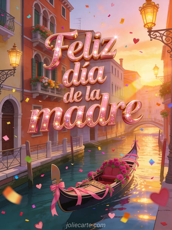 Celebren el Día de la Madre con una tarjeta vibrante inspirada en un atardecer veneciano. También pueden ver feliz día de la madre a mi mamá fallecida, imagen gratis día de la madre para descargar y mamá cita día de la madre.