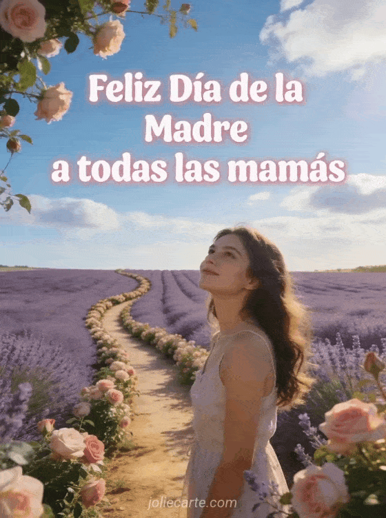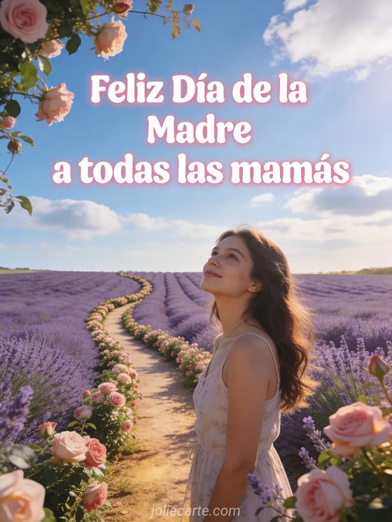 Celebra a todas las mamás con esta tranquila tarjeta con campo de lavanda y luz primaveral dorada. Descubre también imagen día de la madre o tarjeta para el día de la madre.