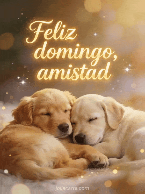 Compartan un saludo tierno de domingo y amistad con dos cachorros adorables abrazados, un golden retriever y un labrador en un ambiente cálido y acogedor. También pueden enviar feliz domingo imágenes gif animado o una tarjeta animada de feliz domingo.