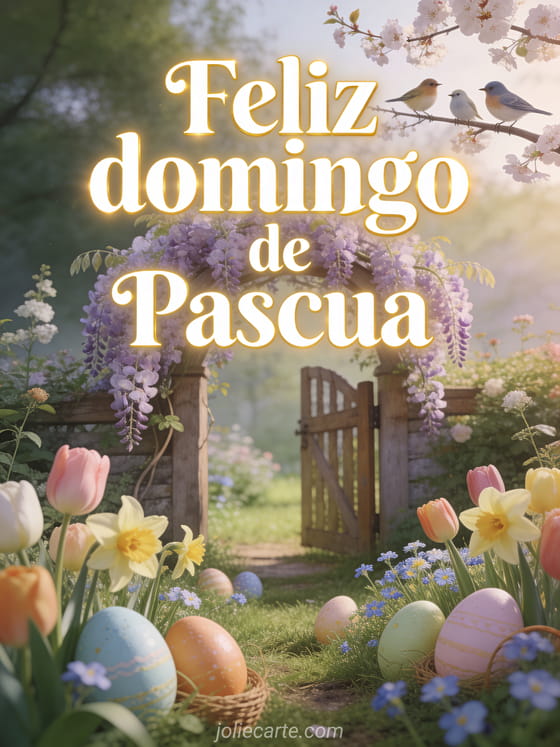 Comparte la magia del domingo de Pascua con esta encantadora tarjeta gratuita. Descubre también una tarjeta fin de semana de Pascua o una Felices Pascuas buen domingo.